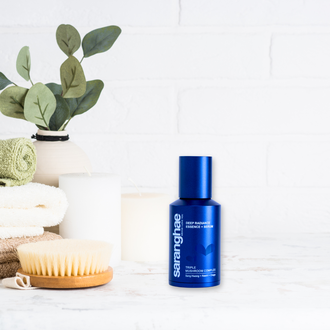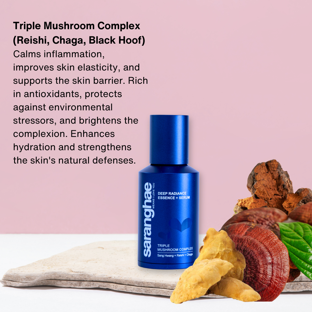 Due to the complexities in stabilizing mushroom extracts for skincare, Saranghae is currently the only skincare brand in the world offering the triple mushroom complex: reishi, chaga, sang hwang.