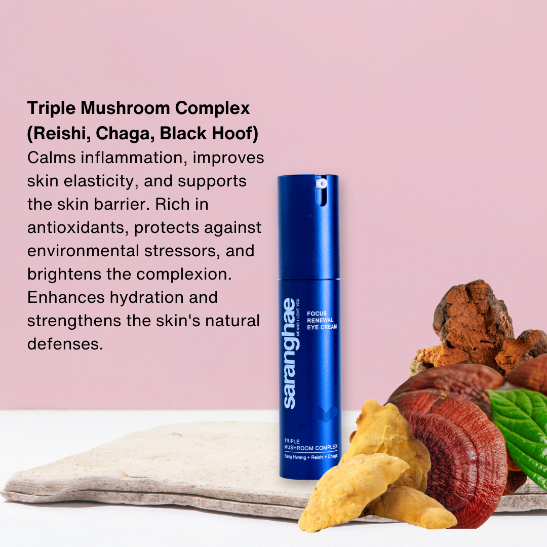 The 8th Generation Saranghae Focus Renewal Eye Cream is a luxurious, science-backed skincare solution crafted to combat signs of aging and fatigue around the eyes. Infused with adaptogenic mushrooms like reishi, chaga, and black hoof mushrooms, this cream harnesses ancient wisdom combined with modern skincare technology. Its potent formula targets sagging skin, dark circles, puffiness, and crow’s feet while deeply hydrating and revitalizing the delicate under-eye area.