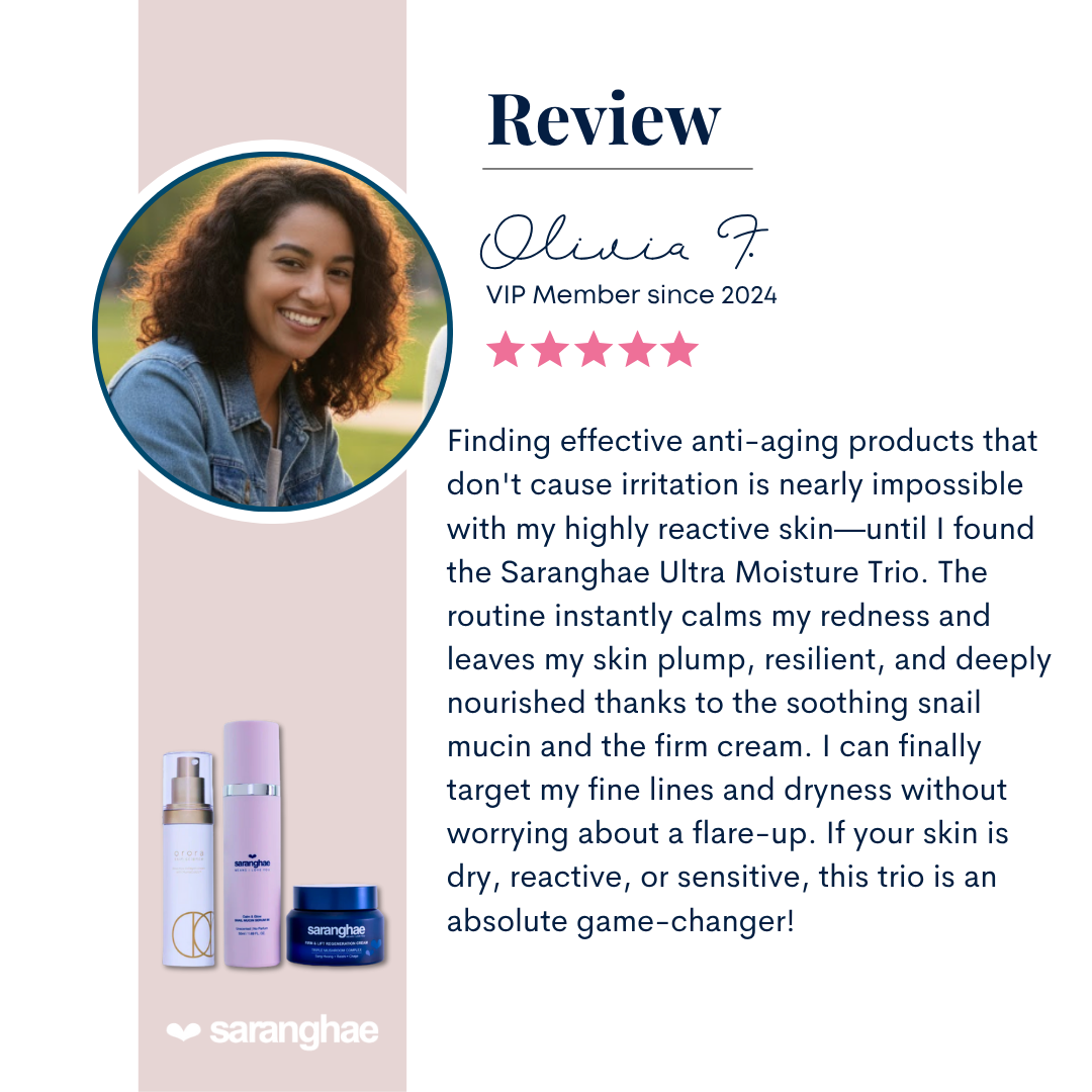 The Saranghae Ultra Moisture Trio combines Korean skincare philosophy with cutting-edge dermal science, offering a holistic, luxurious solution for a uniquely underserved stage of skin health. It’s more than hydration, it’s hormonal skin therapy in three effortless steps.
